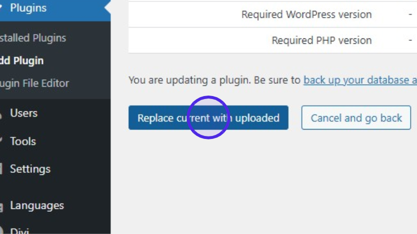 Click on “Replace current with uploaded” (if the plugin is already installed)