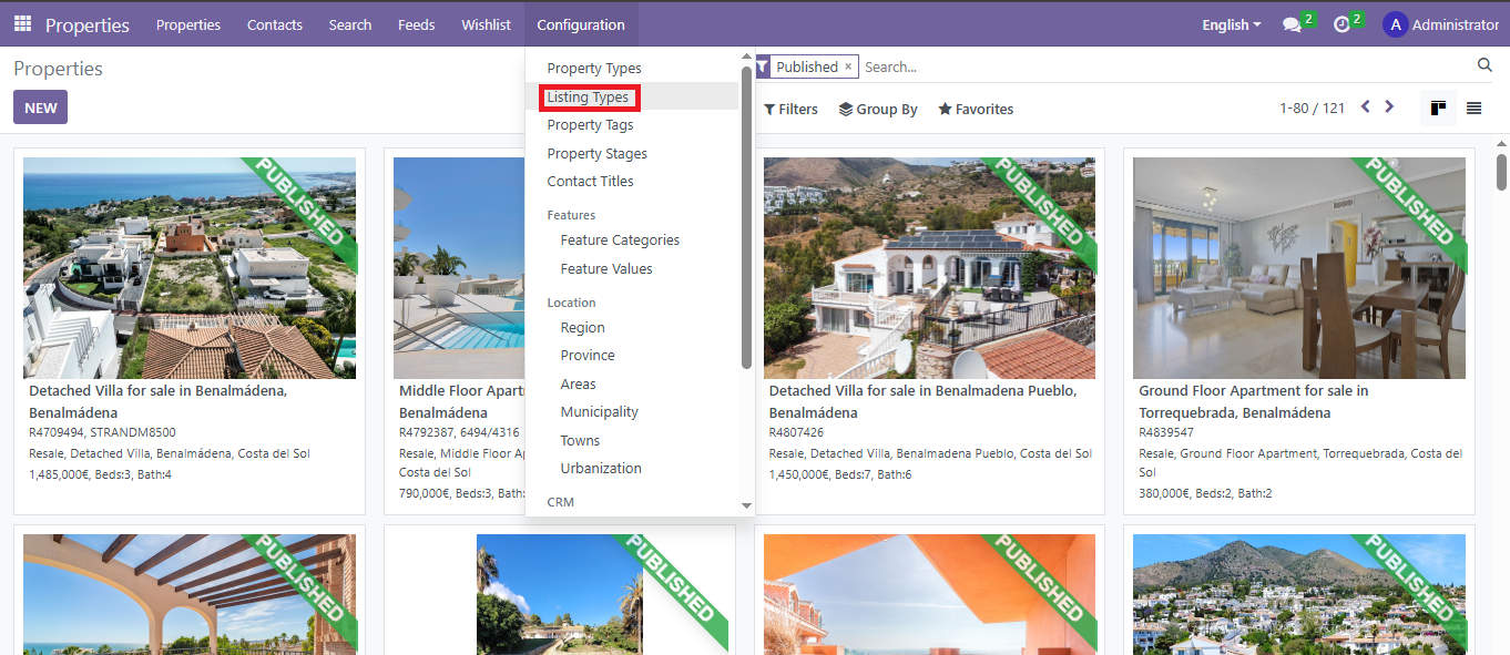 Open the application and locate the “Configurations” menu. - Choose Listing Types