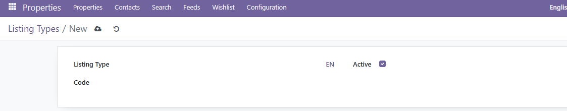 Press the New button to create a new listing type.